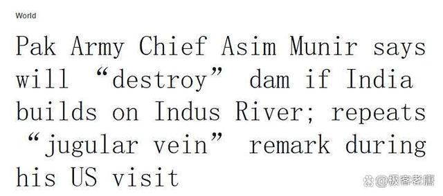据悉,穆尼尔还在出席一场晚宴期间还对印度暂停履行《印度河用水条约》一事发表了看法,当时他是这么说的: